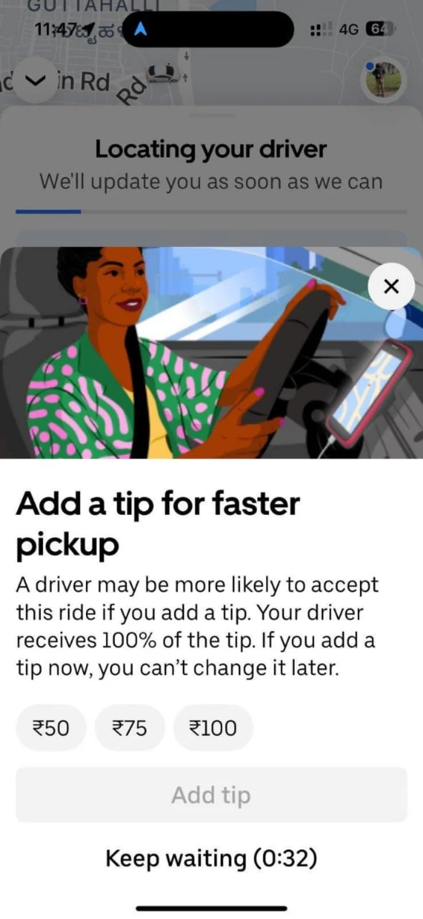 इस सुविधा के तहत ऐप पर तीन तयशुदा टिप विकल्प दिखाई देते हैं – ₹50, ₹75 और ₹100। Uber का दावा है कि "ड्राइवर को टिप की 100% राशि मिलती है" और एक बार जोड़ी गई टिप को बदला नहीं जा सकता।