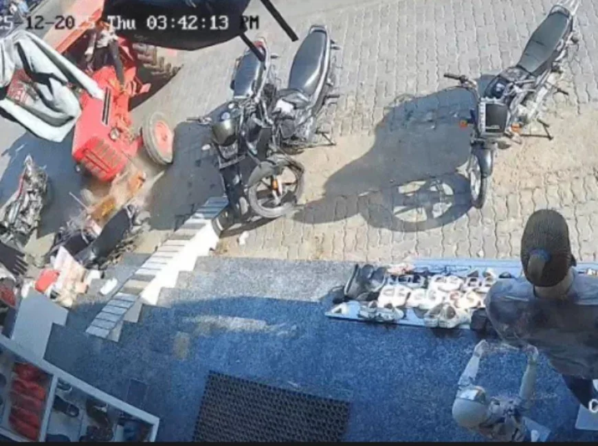 सीन-1: नया बस स्टैंड पर पति-पत्नी की जान पर बन आई हादसे की शुरुआत नया बस स्टैंड से महज 50 मीटर दूर हुई। पाड़ला निवासी अनिल राठौड़ अपनी पत्नी के साथ स्कूटी पर सवार थे। तभी तेज रूरत ट्रैक्टर ने उनकी स्कूटी को पीछे से जोरदार टक्कर मार दी। टक्कर के झटके से अनिल और उनकी पत्नी सड़क पर गिर पड़े। दोनों की सांसें थम सी गईं। ड्राइवर ने भागने की नीयत से ट्रैक्टर को रिवर्स किया, जिससे अनिल ट्रैक्टर के टायर के नीचे आने वाले थे। इस खतरनाक पल में अनिल की पत्नी ने फुर्ती दिखाई और उन्हें पीछे खींच लिया। इस तरह दोनों की जान बाल-बाल बच गई।बेकाबू ट्रैक्टर इसके बाद सड़क किनारे खड़ी दो बाइकों को रौंदता हुआ एक दुकान में जा घुसा। इससे आसपास अफरा-तफरी मच गई और लोग इधर-उधर भागने लगे।
