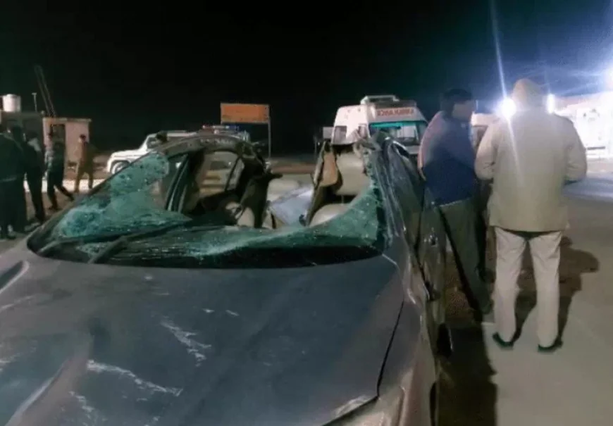 भीलवाड़ा में भीषण सड़क हादसा: तेज रफ्तार कार से टकराया ऊंट, छत फोड़कर अंदर घुसा – ड्राइवर की मौके पर मौत, परिवार के चार सदस्य घायल