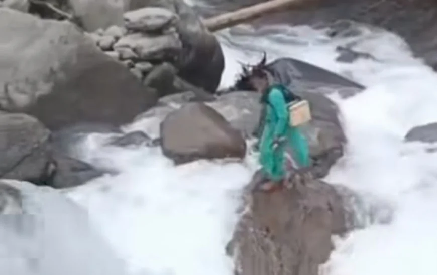 साहस की मिसाल: उफनते नाले को पार करने की हिम्मत