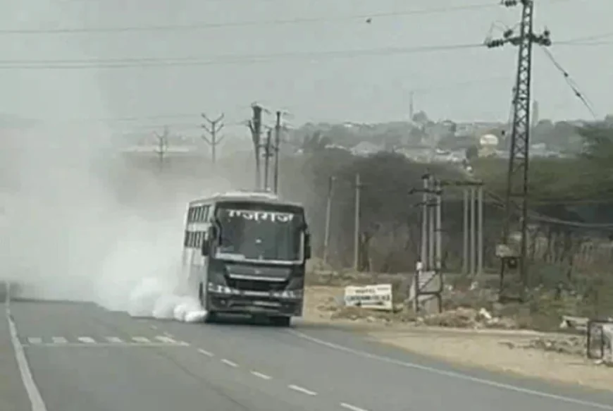 जैसलमेर से दिल्ली जा रही बस में अचानक लगी आग, 500 मीटर तक धुएं के साथ दौड़ी – समय रहते रोकी गई, कोई हताहत नहीं