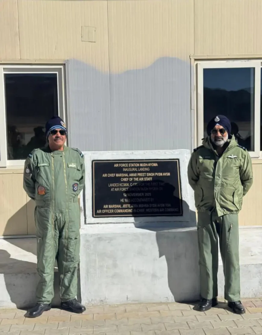 लद्दाख के न्योमा में 13,710 फीट ऊंचाई पर बना दुनिया का सबसे ऊंचा एयरबेस ऑपरेशनल; वायुसेना प्रमुख ने C-130J उतारकर उद्घाटन किया, चीन की LAC से मात्र 25 किमी दूर, ₹218 करोड़ की लागत।