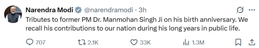 पीएम मोदी ने मनमोहन सिंह की 93वीं जयंती पर दी श्रद्धांजलि: "राष्ट्र सेवा के प्रति समर्पण को सलाम"