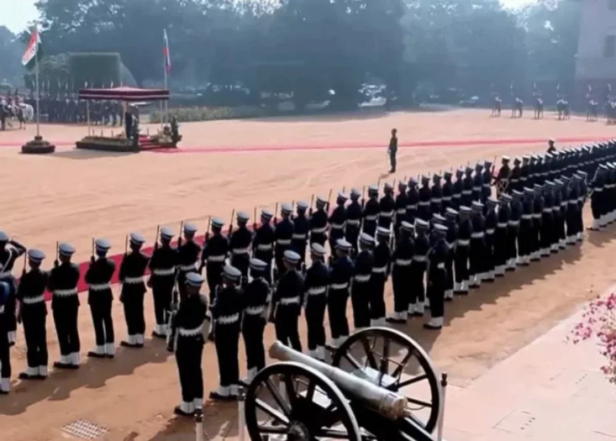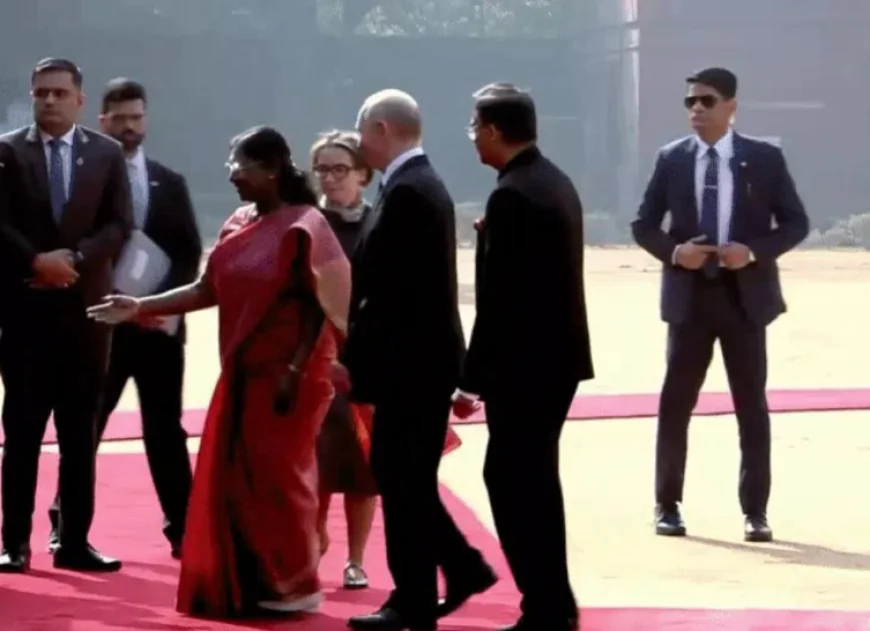 भव्य स्वागत समारोह: परंपरा और सम्मान का संगम दोपहर में रूसी राष्ट्रपति व्लादिमीर पुतिन का विमान नई दिल्ली के इंदिरा गांधी अंतरराष्ट्रीय हवाई अड्डे पर उतरा। हवाई अड्डे पर ही उन्हें भारतीय विदेश मंत्री एस. जयशंकर और अन्य वरिष्ठ अधिकारियों ने गर्मजोशी से स्वागत किया। इसके तुरंत बाद राष्ट्रपति भवन ले जाया गया, जहां राष्ट्रपति द्रौपदी मुर्मू और प्रधानमंत्री नरेंद्र मोदी की उपस्थिति में औपचारिक स्वागत समारोह आयोजित किया गया।राष्ट्रपति भवन के प्रांगण में 21 तोपों की सलामी गूंजी, जो किसी विदेशी राष्ट्राध्यक्ष को दिए जाने वाले सर्वोच्च सैन्य सम्मान का प्रतीक है। सलामी के बाद पुतिन को भारतीय सेना के विशेष गार्ड ऑफ ऑनर प्रदान किया गया। इस दौरान राष्ट्रीय ध्वज फहराया गया और राष्ट्रगान की धुन पर सभी ने खड़े होकर सम्मान प्रकट किया। पुतिन ने अपनी मुस्कान के साथ इस समारोह में भाग लिया और भारतीय परंपराओं की सराहना की। एक वरिष्ठ अधिकारी ने बताया कि यह समारोह दोनों देशों की गहरी सांस्कृतिक और कूटनीतिक समझ को दर्शाता है।स्वागत समारोह के दौरान राष्ट्रपति मुर्मू ने पुतिन का स्वागत करते हुए कहा, "भारत और रूस के बीच दोस्ती न केवल मजबूत है, बल्कि यह वैश्विक शांति और स्थिरता के लिए एक मिसाल भी है। आपका यह दौरा हमारे संबंधों को नई दिशा देगा।" पुतिन ने इसका जवाब देते हुए कहा, "भारत हमारा सबसे विश्वसनीय साझेदार है। हम यहां न केवल व्यापार की बात करने आए हैं, बल्कि भविष्य की रणनीतियों पर भी विचार-विमर्श करेंगे।"