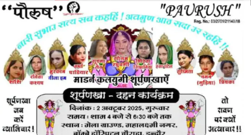 इस बार विजयादशमी का पर्व इंदौर में एक अनोखे और विचारोत्तेजक अंदाज में मनाया जाएगा। शहर की सामाजिक संस्था 'पौरुष' ने परंपरागत रावण दहन की जगह 11 मुखी शूर्पणखा का पुतला जलाने का फैसला किया है। इस पुतले पर उन 11 महिलाओं की तस्वीरें होंगी, जिन्होंने अपने पति या बच्चों की हत्या जैसे जघन्य अपराध किए हैं। इस पहल का उद्देश्य समाज में बढ़ते अपराधों, खासकर वैवाहिक जीवन में पुरुषों के खिलाफ हिंसा, पर जागरूकता लाना है। इस कार्यक्रम को स्थानीय विधायक उषा ठाकुर का भी समर्थन प्राप्त है।